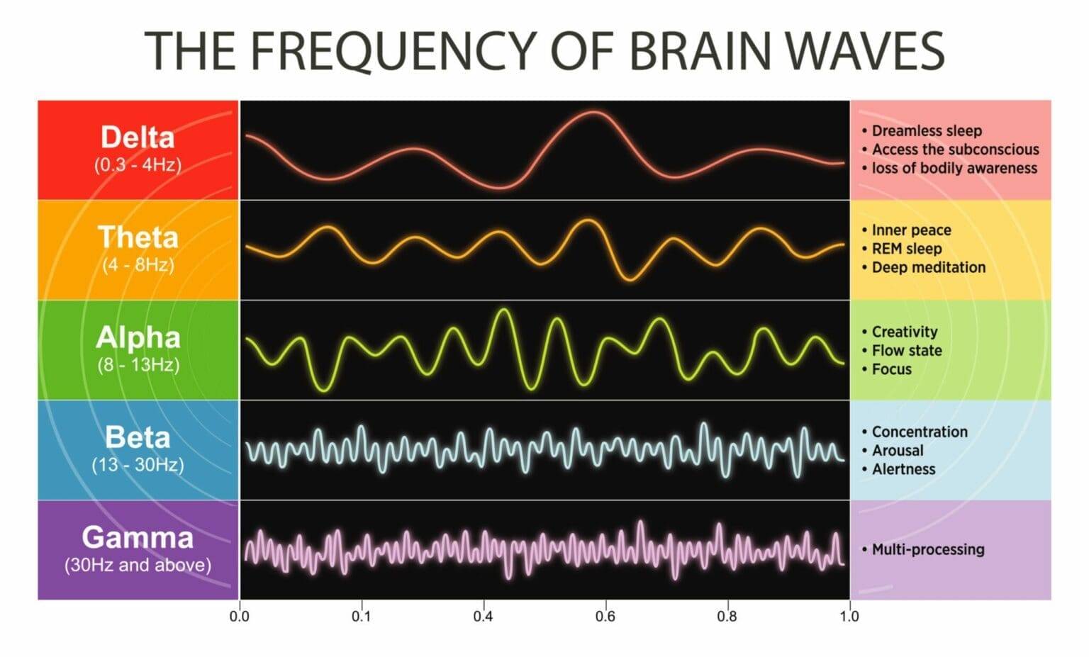There are five main types of brain waves, classified by frequency (speed) in hertz (cycles per second). They represent different mental states.