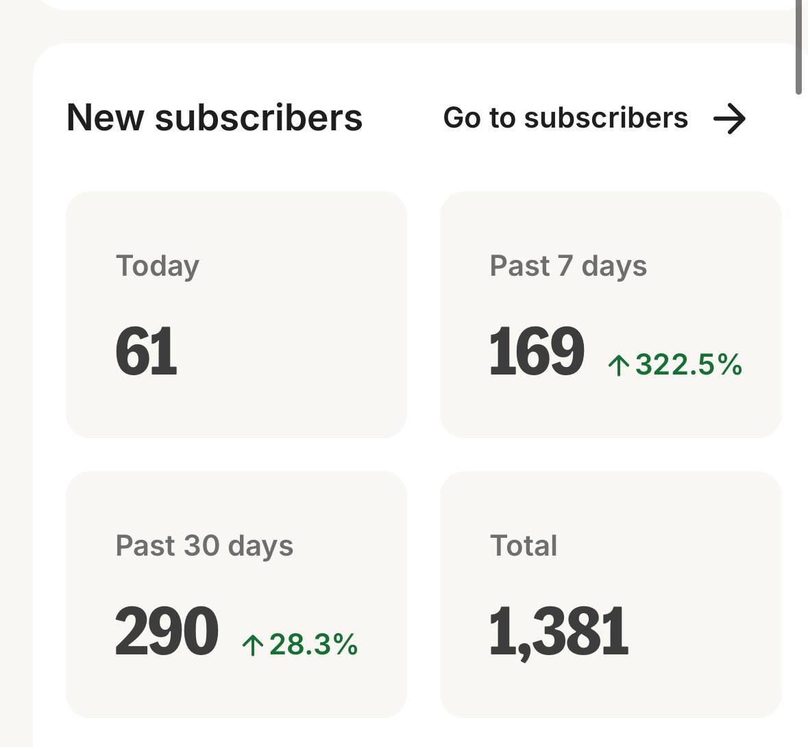 I achieved 200 newsletter subscribers in 8 months and added 1100 in 4 months.