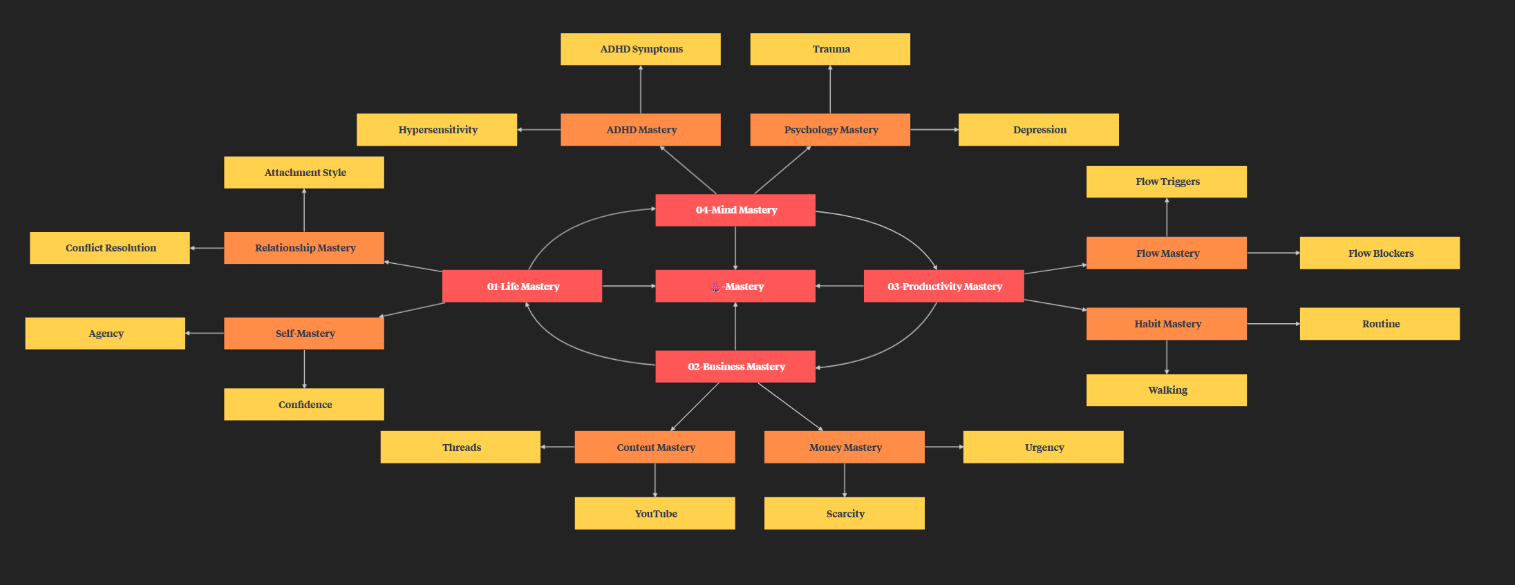 → The goal of Mastery🔴 is to learn and understand the sub-categories to level up to master the higher categories.