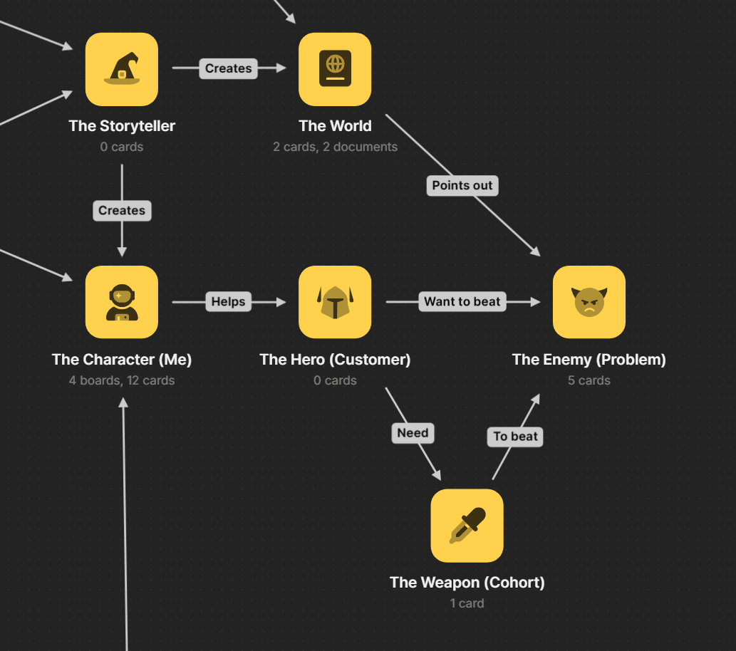 What you do after 6 months in the creatorpreneur journey is sell a "weapon" (product) to the hero (customer/audience) and help them beat their enemy, positioning yourself as the mentor.